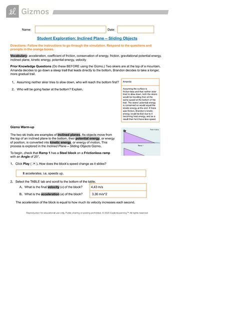 Read Online student exploration inclined plane sliding objects answer Reader